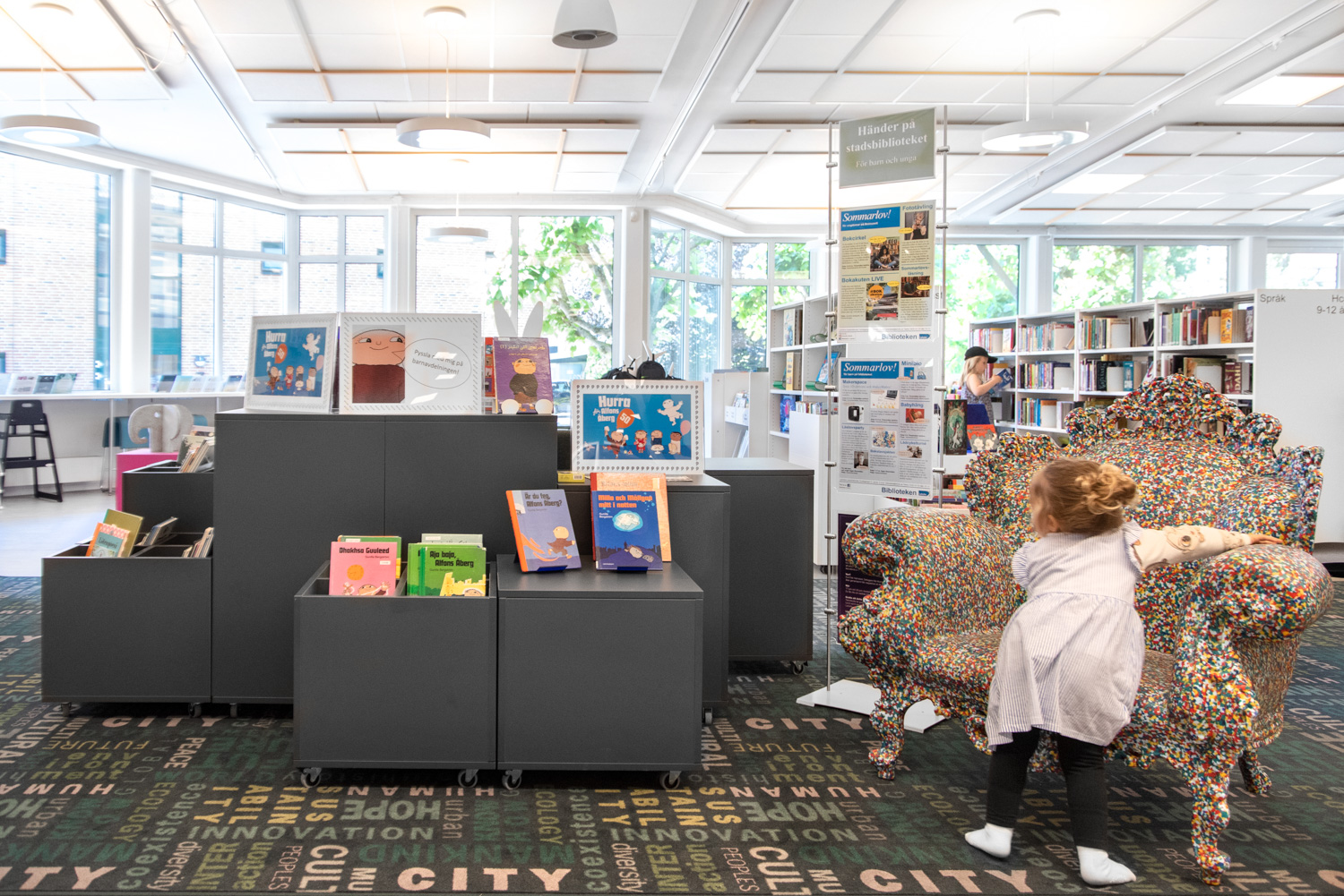 En generös fåtölj för de vuxnas litterära strövtåg eller vid högläsning för de minsta.