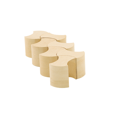 Puzzle är lika mycket en möbelgrupp som ett lekredskap utformad för barn och på barns villkor. Formen är lika enkel som genialisk där såväl elementen som konstruktionen bildar bord och pallar.