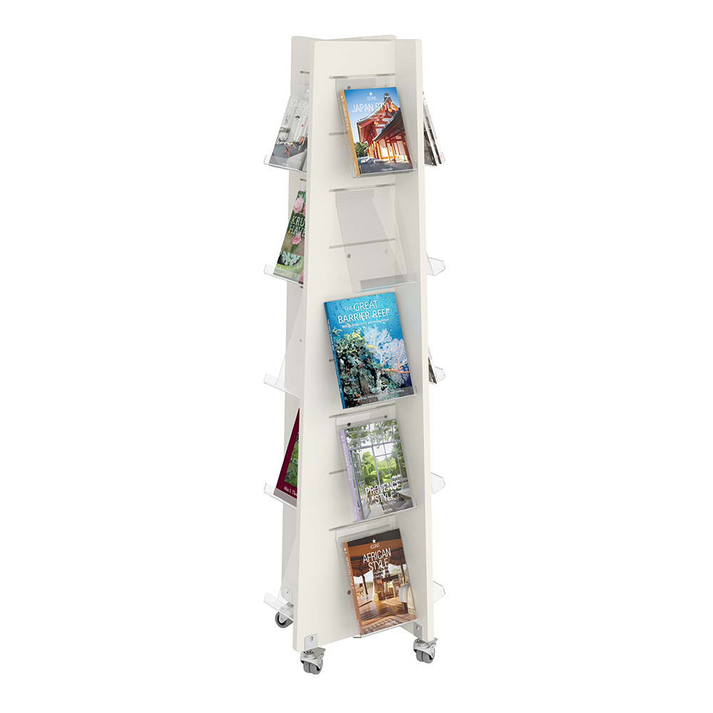 Fyrsidigt torn för frontexponering av böcker med mera.