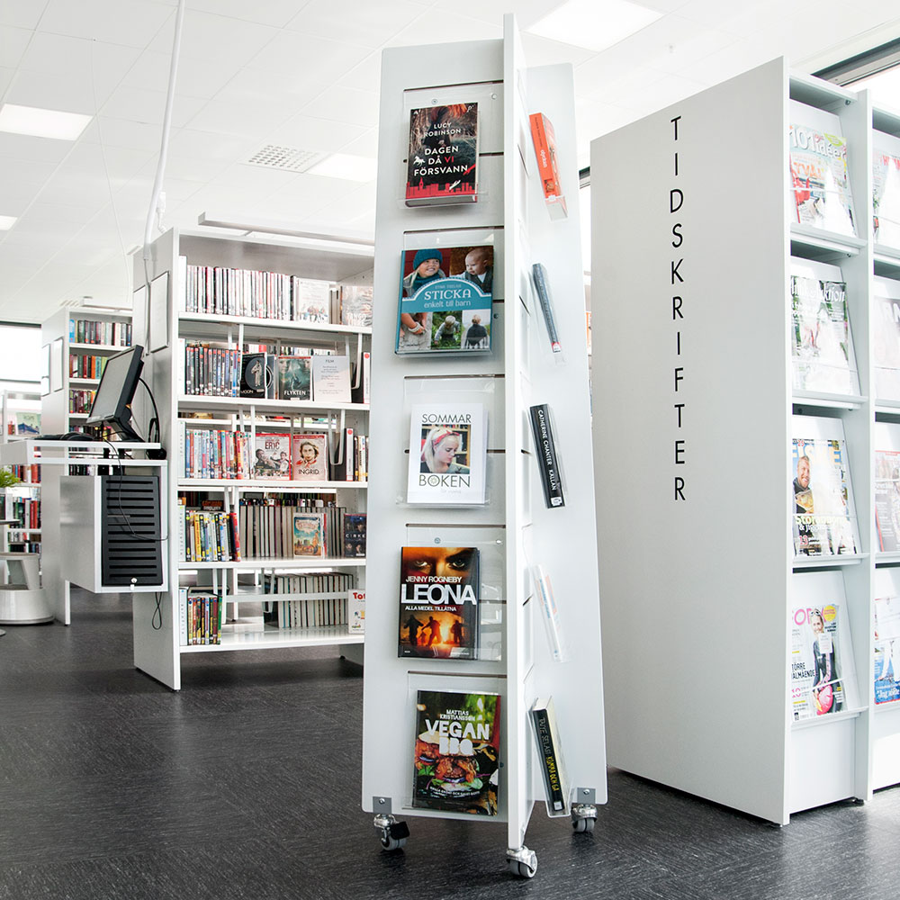 Skapa attraktiva fokuspunkter för dina besökare. Smart förvarings- och exponeringslösning för böcker och andra media.