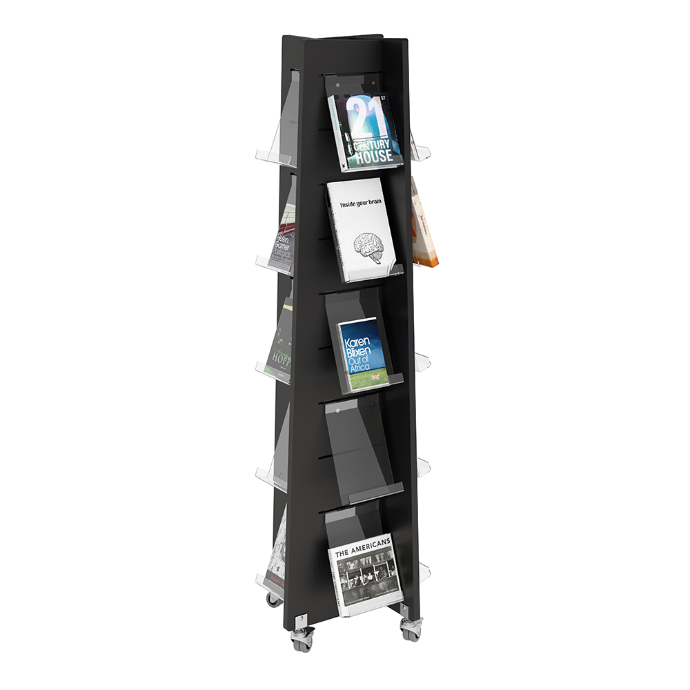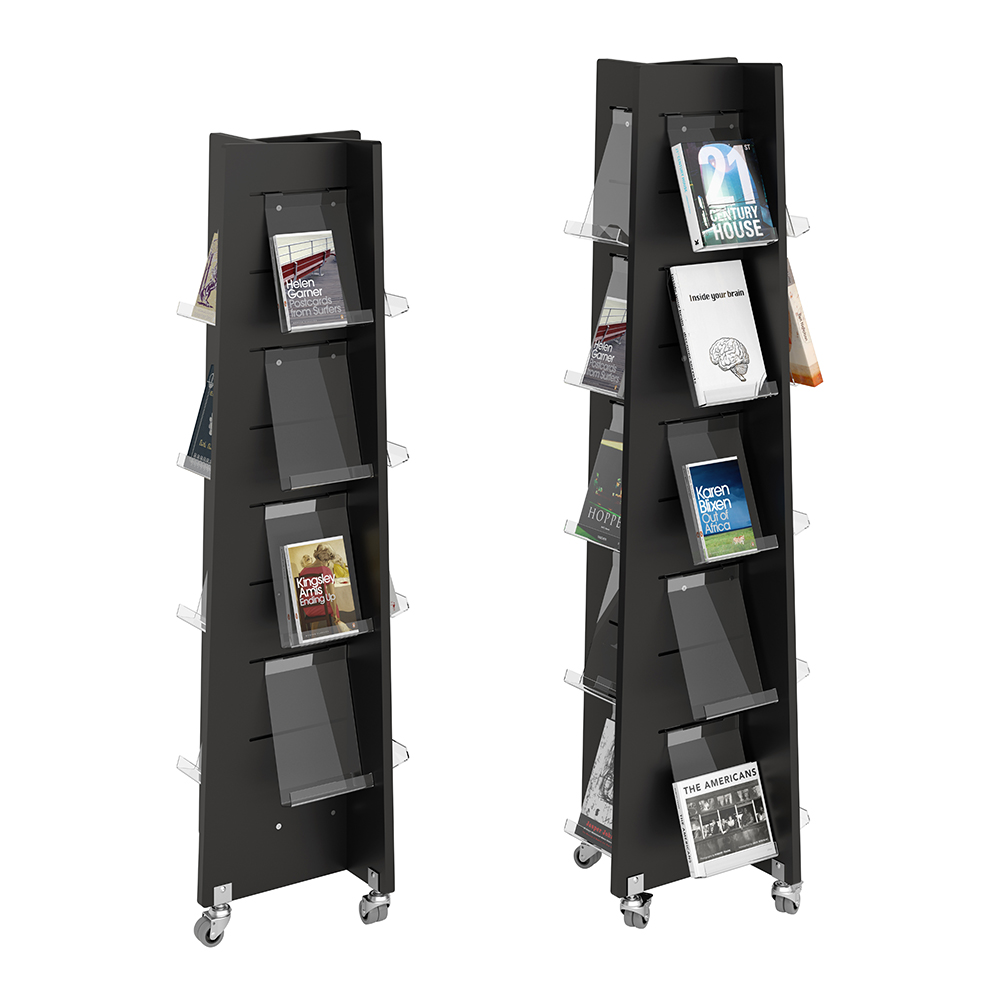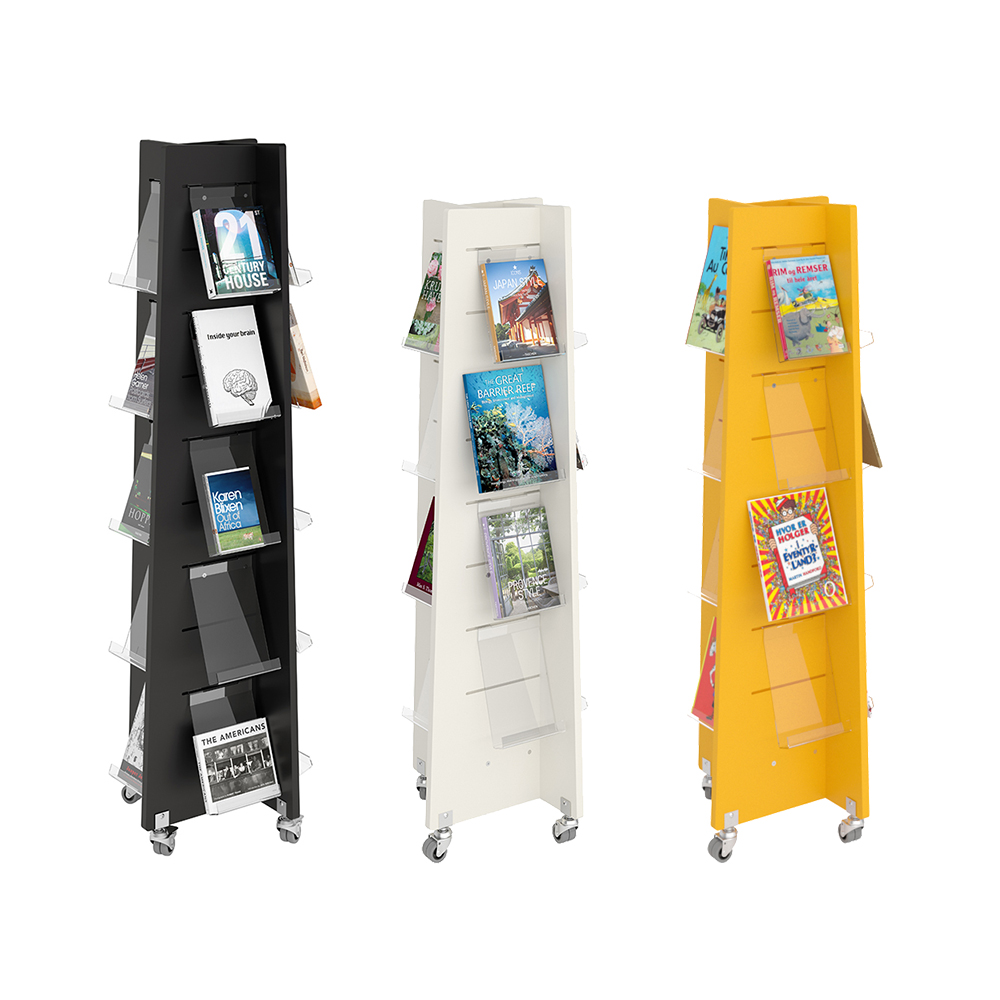 Fyrsidigt torn för frontexponering av böcker med mera.