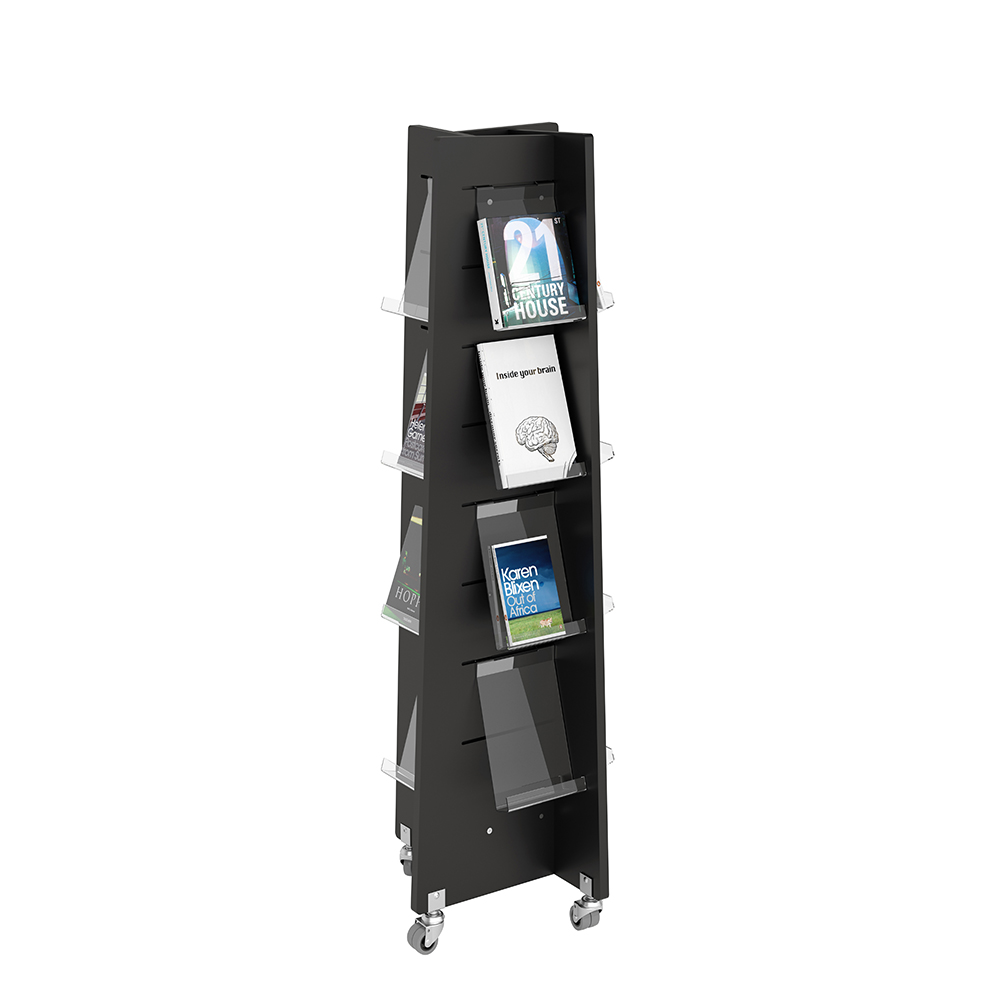 Fyrsidigt torn för frontexponering av böcker med mera.