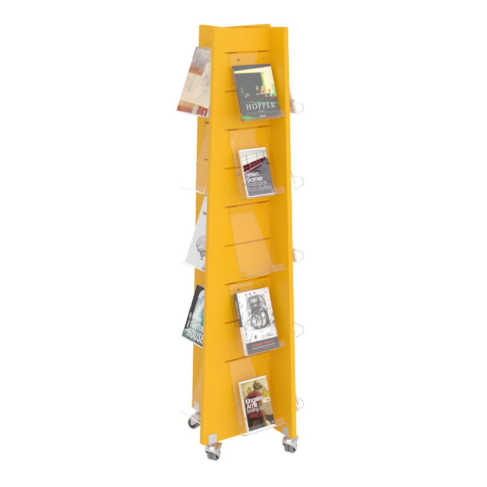 Fyrsidigt torn för frontexponering av böcker med mera.