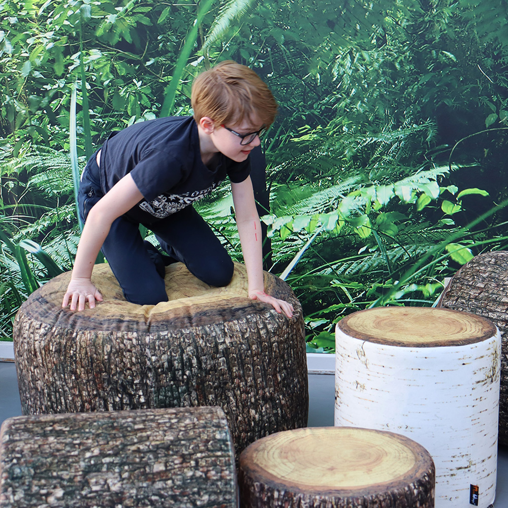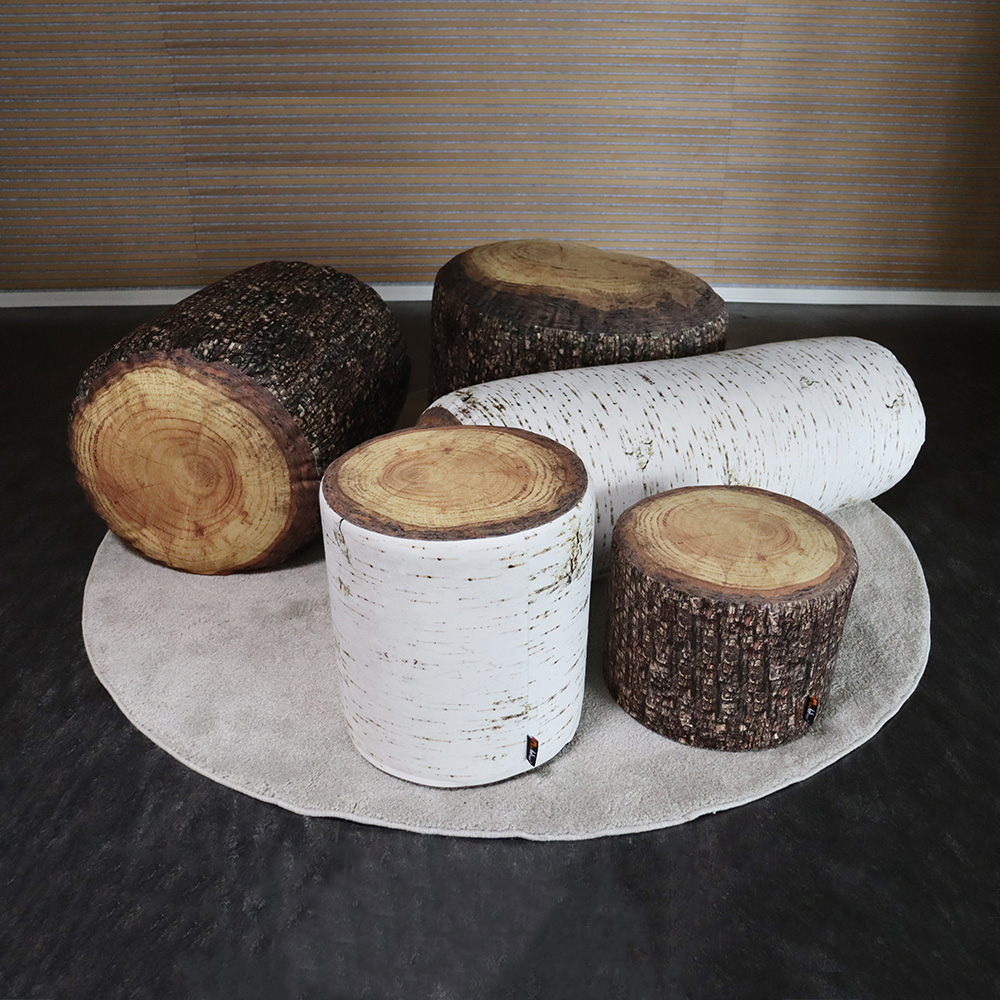 Ragnar puffarna har dubbla lager och klädda med ett tjockt sammetsliknande tyg med fotorealistiskt digitaltryck som med fantastisk 3D-effekt som skapar naturinspirerade miljöer.