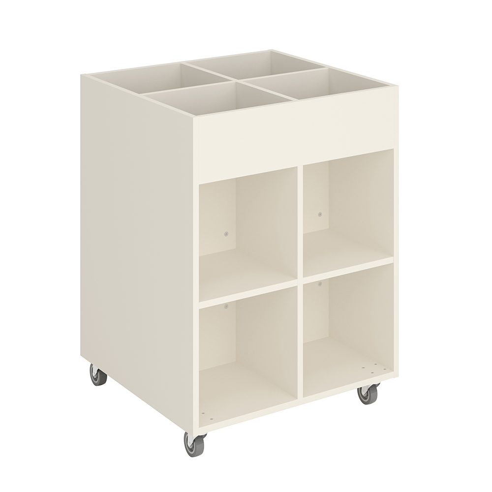 Sara Midi är ett bilderbokstråg med fyra exponeringsfack överst och fyra förvaringsfack under. Lämpligt för barn.