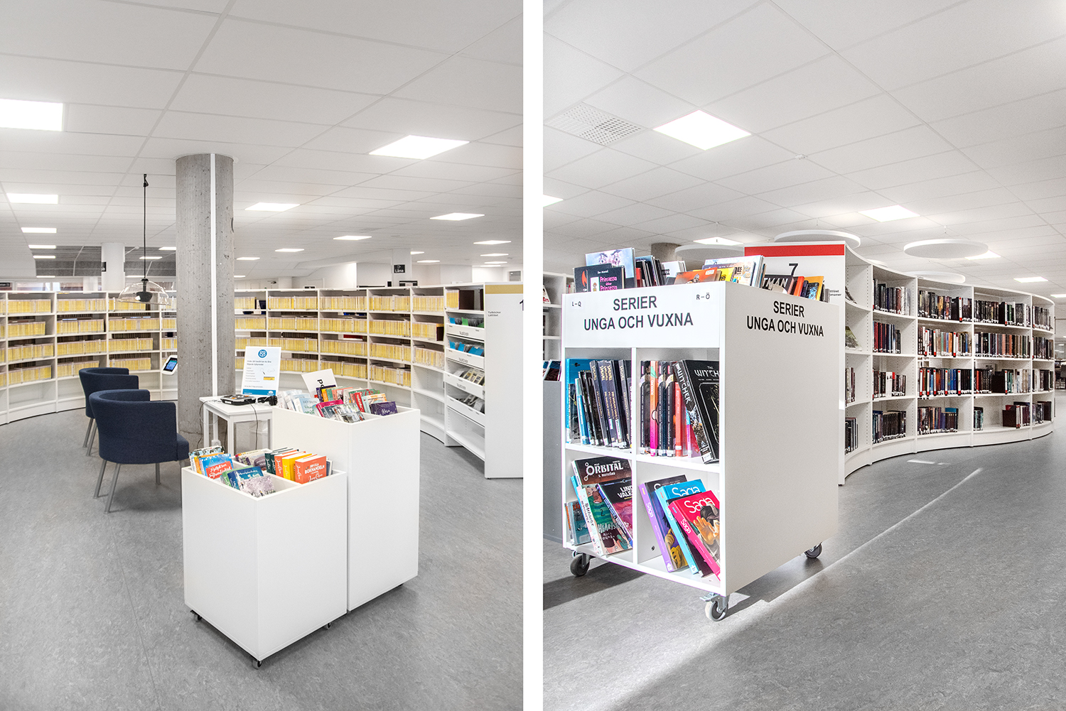 Sara är en serie bilderbokstråg som finns i både rund och fyrkantig form samt i tre olika höjder för att för att du ska kunna välja den bästa och mest flexibla lösningen för din biblioteksmiljö.