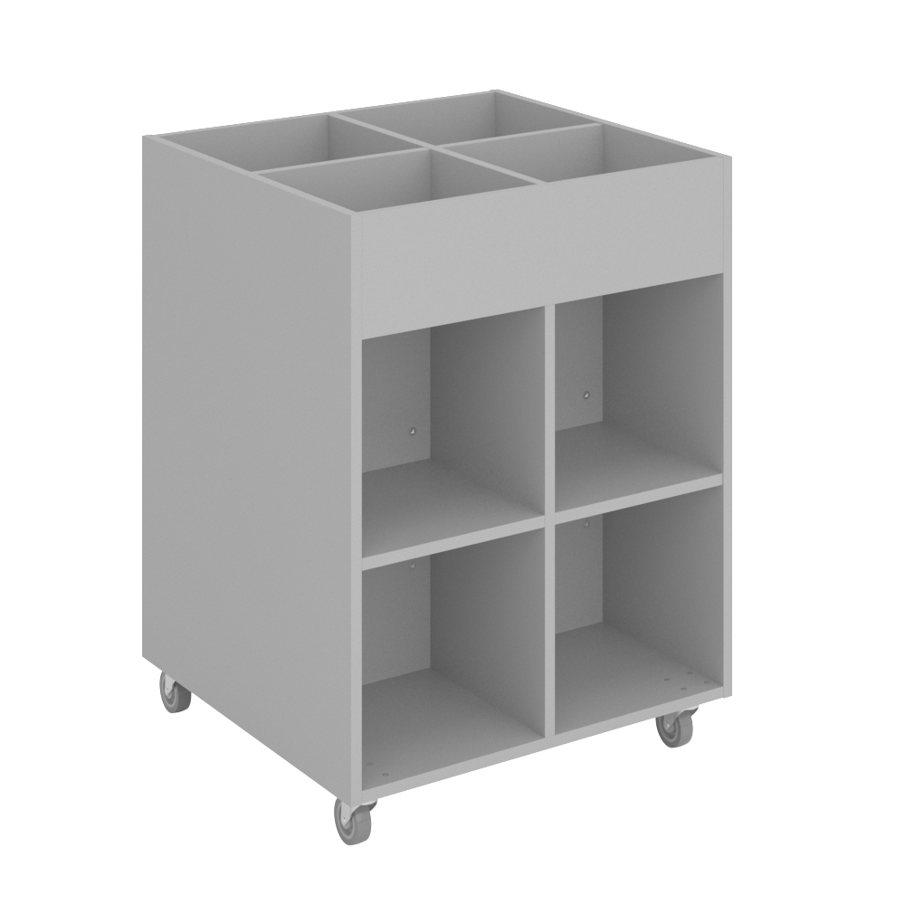 Sara Midi är ett bilderbokstråg med fyra exponeringsfack överst och fyra förvaringsfack under. Lämpligt för barn.