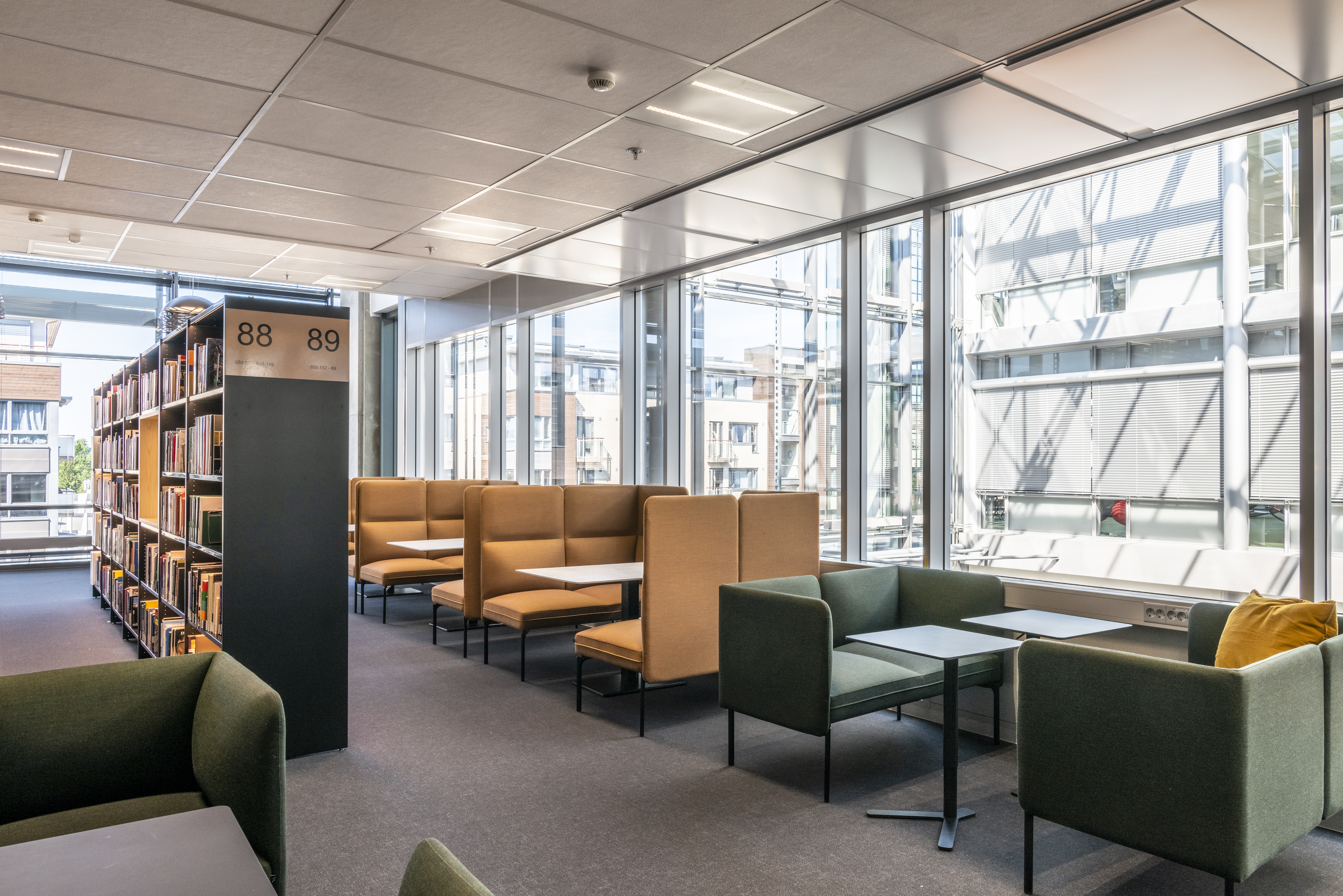 Med sina olika rygghöjder som bidrar till att reducera störande ljud tar serien hänsyn till de akustiska utmaningar som kan finnas på biblioteket. Som tillval finns en ram med eklameller som hjälper till att dela upp rummet och skapa ett avgränsat område – utan att man förlorar överblicken.