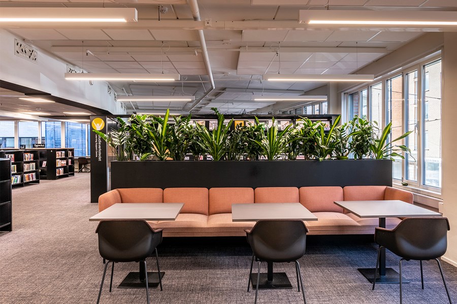 Senso är en serie med flexibla och behagliga sittmöbler från Fora Form. Möblerna är multifunktionella och kan sättas samman på många olika sätt för att passa in i biblioteksinredningen och skapa god komfort.