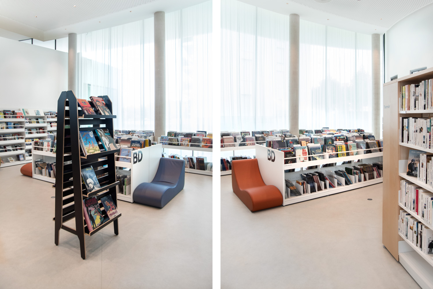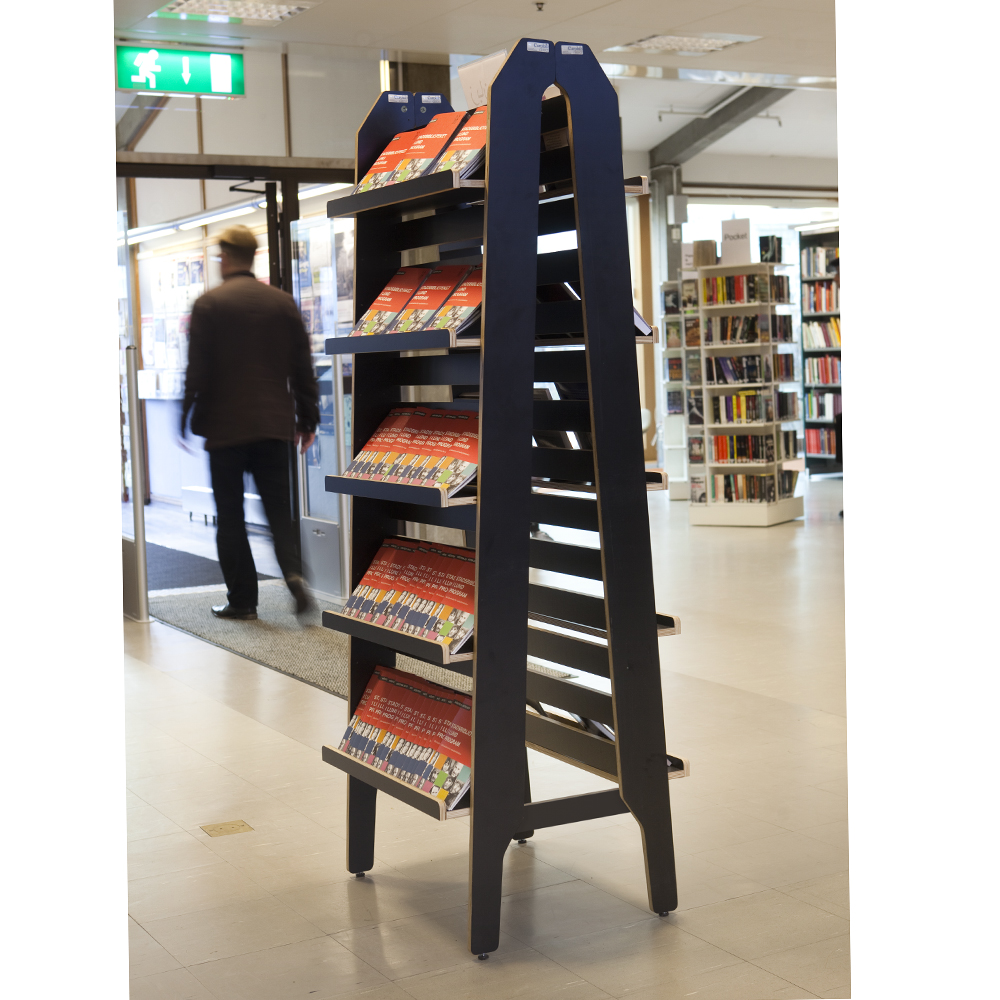 Vi talar laminerad björkplywood; här med synliga kanter. Allt för att få en såväl tålig yta som hållbar konstruktion. Perfekt för de mest krävande biblioteksmiljöerna!