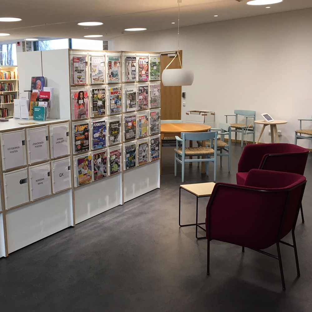Vi talar laminerad björkplywood; här med synliga kanter. Allt för att få en såväl tålig yta som hållbar konstruktion. Perfekt för de mest krävande biblioteksmiljöerna!