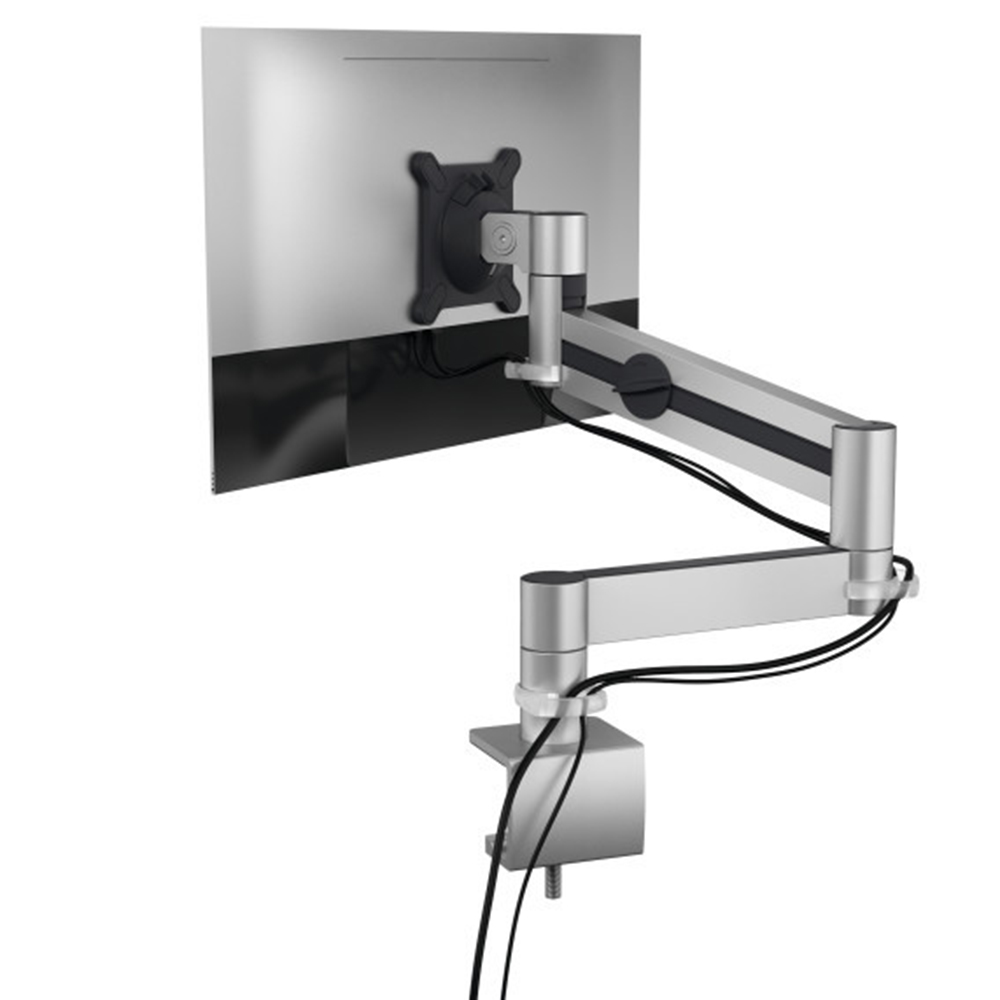 Den justerbara skärmarmen är en särskilt lämplig lösning för en ergonomisk arbetsplats.