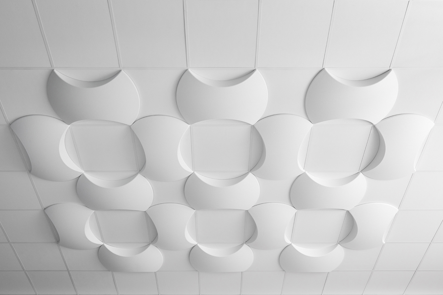 Alltför många karaktärslösa tak och väggar bidrar till intetsägande inomhusmiljöer. Sky är ett moduluppbyggt system som försöker ändra detta med hjälp av ett formspråk som ger rummet visuell energi samtidigt som akustiken förbättras. Nyckeln är enkelhet.