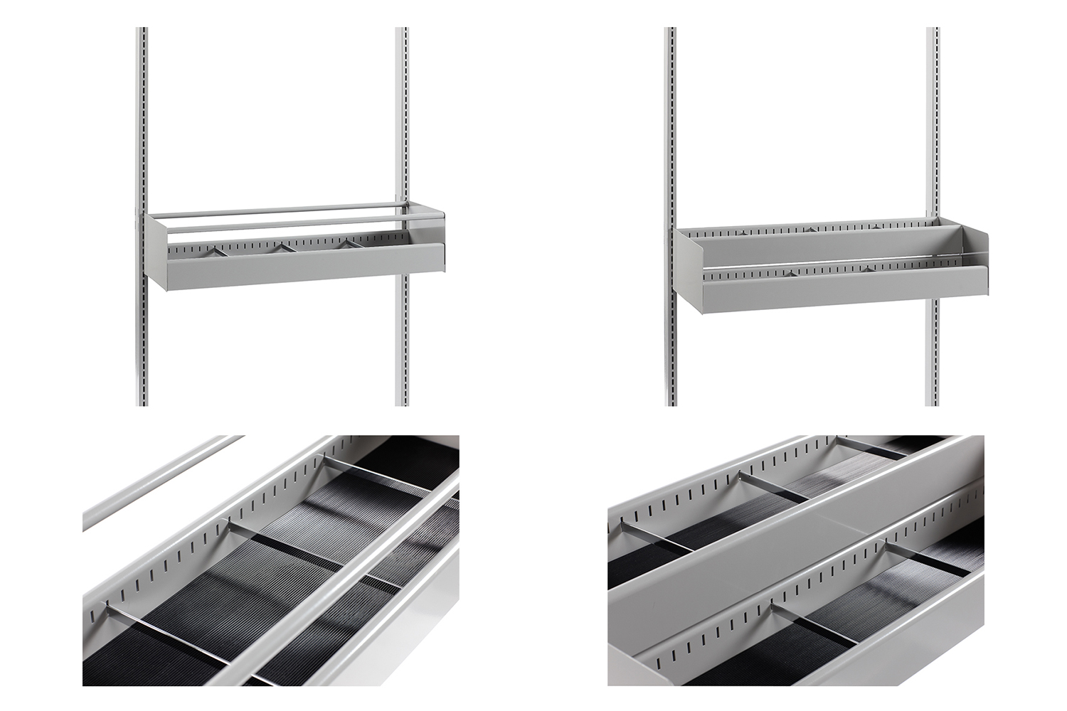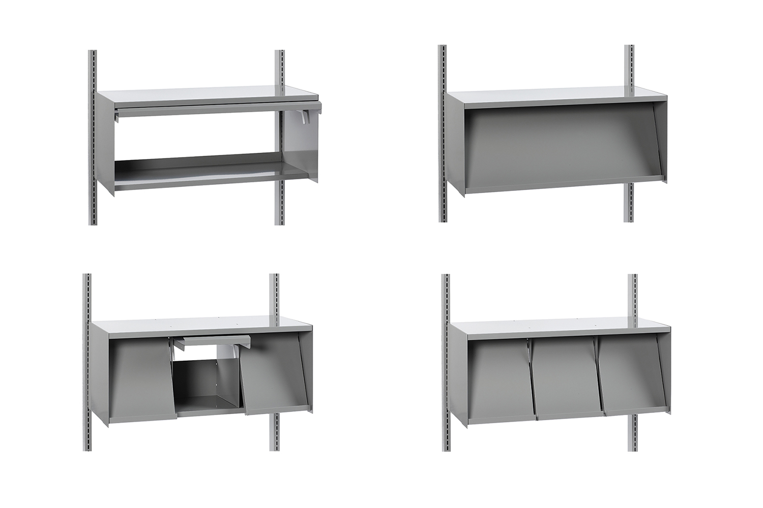 Detta kan göras med olika typer av hyllor eller diverse funktionselement, varigenom man skapar unika hyllsystem.
