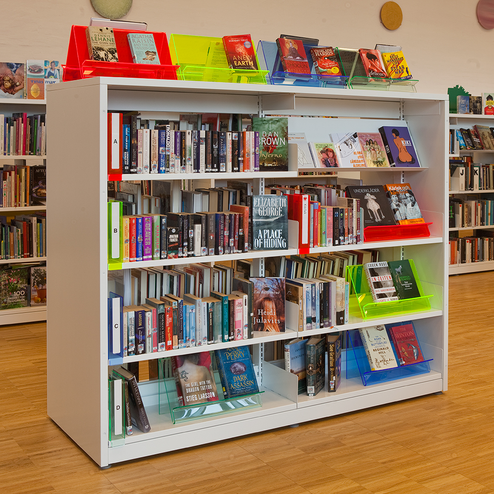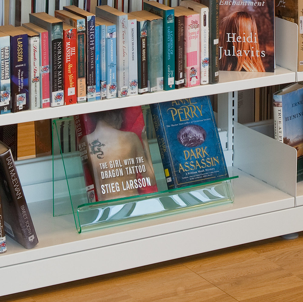 Möjligt att placera överallt i lokalen för att exponera böcker, tidningar eller broschyrer på den väl tilltagna kanten. Använd luftspalten mellan kant och rygg för att hålla exv. blanketter på plats.