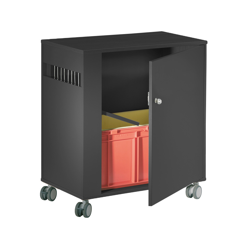 Mobilt och låsbart fack med öppningsbart sidoparti för enkel åtkomst. Invändigt försedd med bokback med mjuk botten.